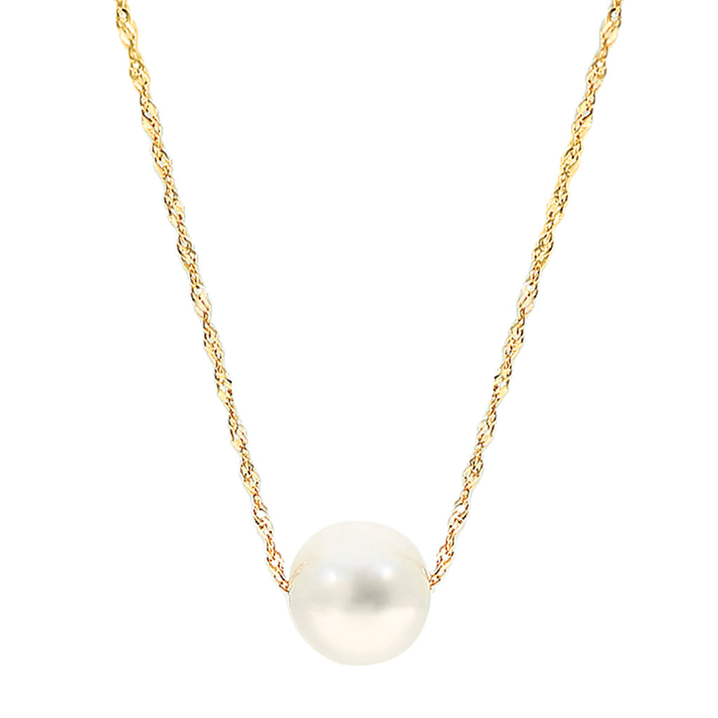 Bremer Jewelry Bead Shape Freshwater Cultured Pearl Solitaire Pendant set in 14K Yellow Gold.