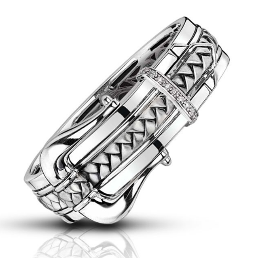 Estate 925 White Sterling Silver "Scott Kay" Diamond Buckle Bracelet set with Round-shape Diamond G-H Color SI Clarity . This bracelet's total carat weight is xxxctw.
