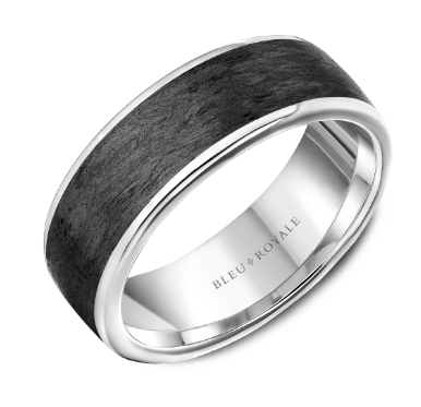 CrownRing Classic 7.5mm Wedding Ring in 14K Black Carbon Fiber/White Gold.