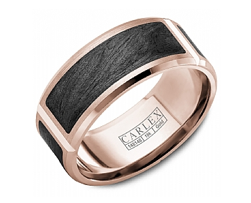 Carlex Textured 9mm Wedding Ring in 14K Rose Gold/Black Forged Carbon Fiber