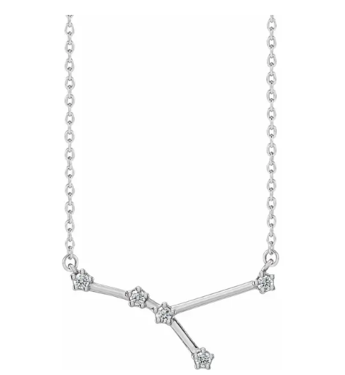 My Brightest Star 14K White Gold Cancer Zodiac Pendant with 14K White Gold Cable Link Necklace set with 6 Round-shape Diamonds H Color I1 Clarity . This necklace's total carat weight is 0.18ctw.