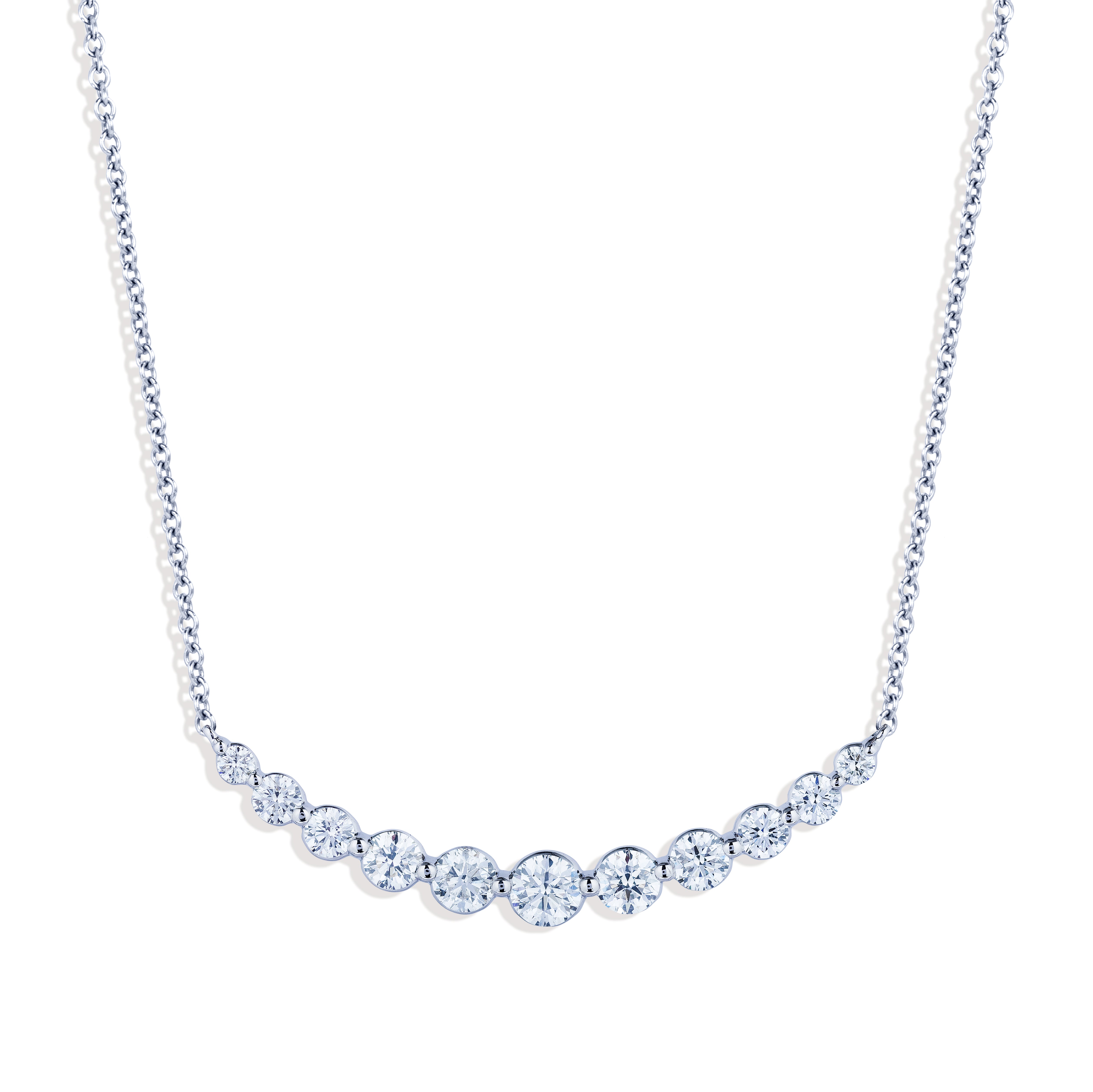 Bremer Jewelry 18K White Gold Smile Necklace set with 10 Round-shape Diamonds G-H Color VS Clarity . This necklace's total carat weight is 1.00ctw.