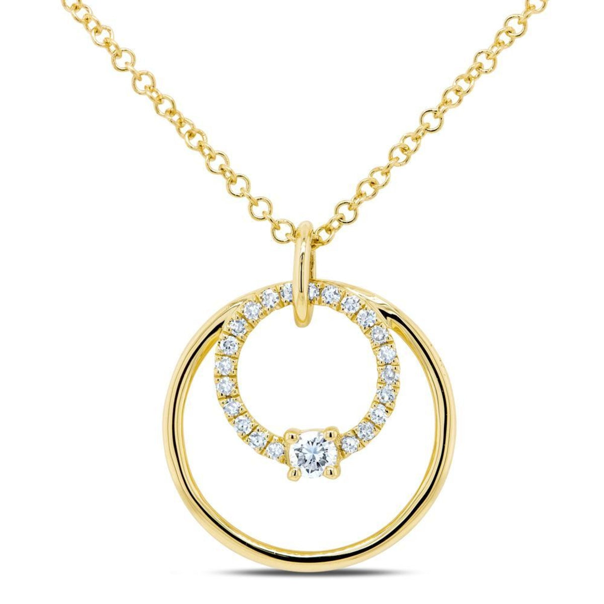 Bremer Jewelry You + Me 14K Yellow Gold Circle Pendant with 14K Yellow Gold Cable Link Necklace set with Round-shape Diamonds H-I Color SI Clarity . This necklace's total carat weight is 0.11ctw.