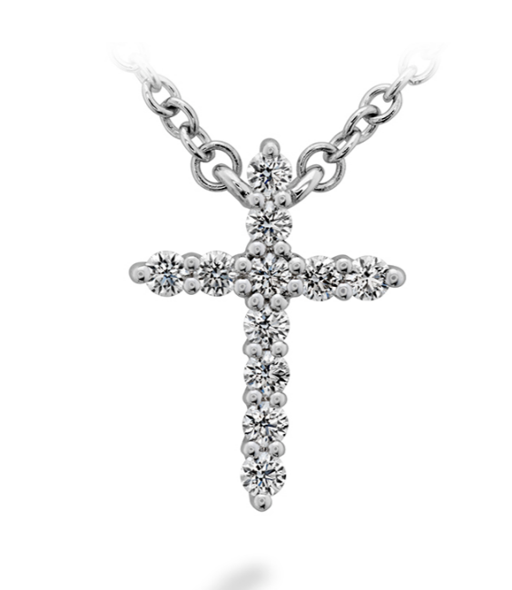 Hearts On Fire 18K White Gold Cross Necklace set with 11 Round-shape Diamonds G-H Color SI Clarity . This necklace's total carat weight is 0.11ctw.