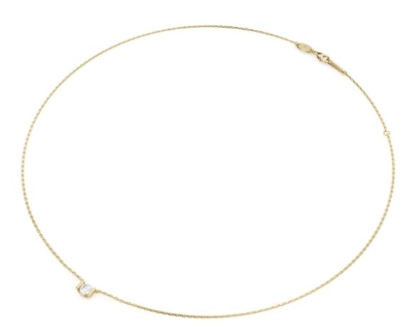 Noam Carver Aura Collection 14K Yellow Gold Solitaire Pendant with 14K Yellow Gold Cable Link Necklace set with 1 Round-shape Diamond (0.40ct) G-H Color SI2 Clarity . This necklace's total carat weight is .40ctw.