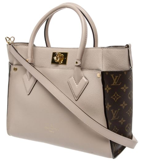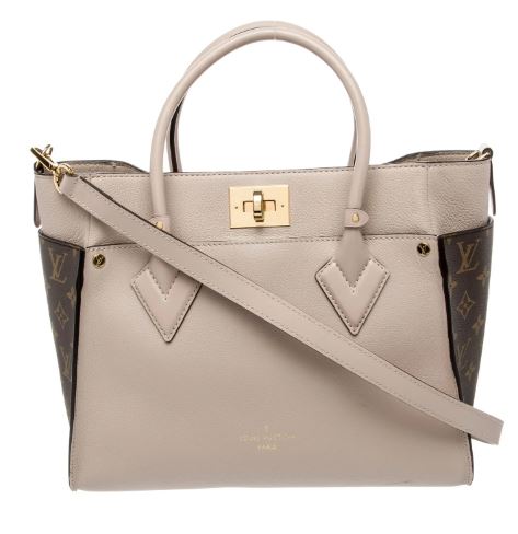 Pre-Owned Louis Vuitton On My Side Tote Leather with Monogram Canvas Cream MM