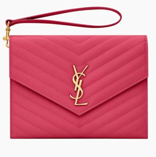 Pre-Owned YSL Saint Laurent Pink Grain de Poudre Wristlet - Full Set
