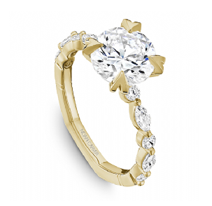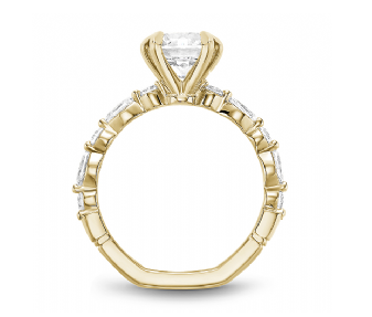 Noam Carver 14K Yellow Gold Side Stone Diamond Engagement Ring Setting designed to hold a 2.00 carat Round shape center stone and set with 6 Round-shape side Diamonds (0.20ctw) F-G Color VS Clarity.