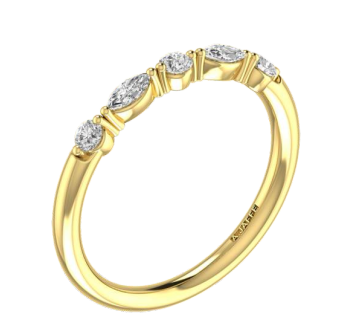 A. JAFFE Half Anniversary Diamond Wedding Ring in 14K Yellow Gold set with 2 Marquise-shape Diamonds (0.14 ctw) G Color SI Clarity and also set with 3 Round Diamonds (0.15 ctw) G Color SI Clarity.