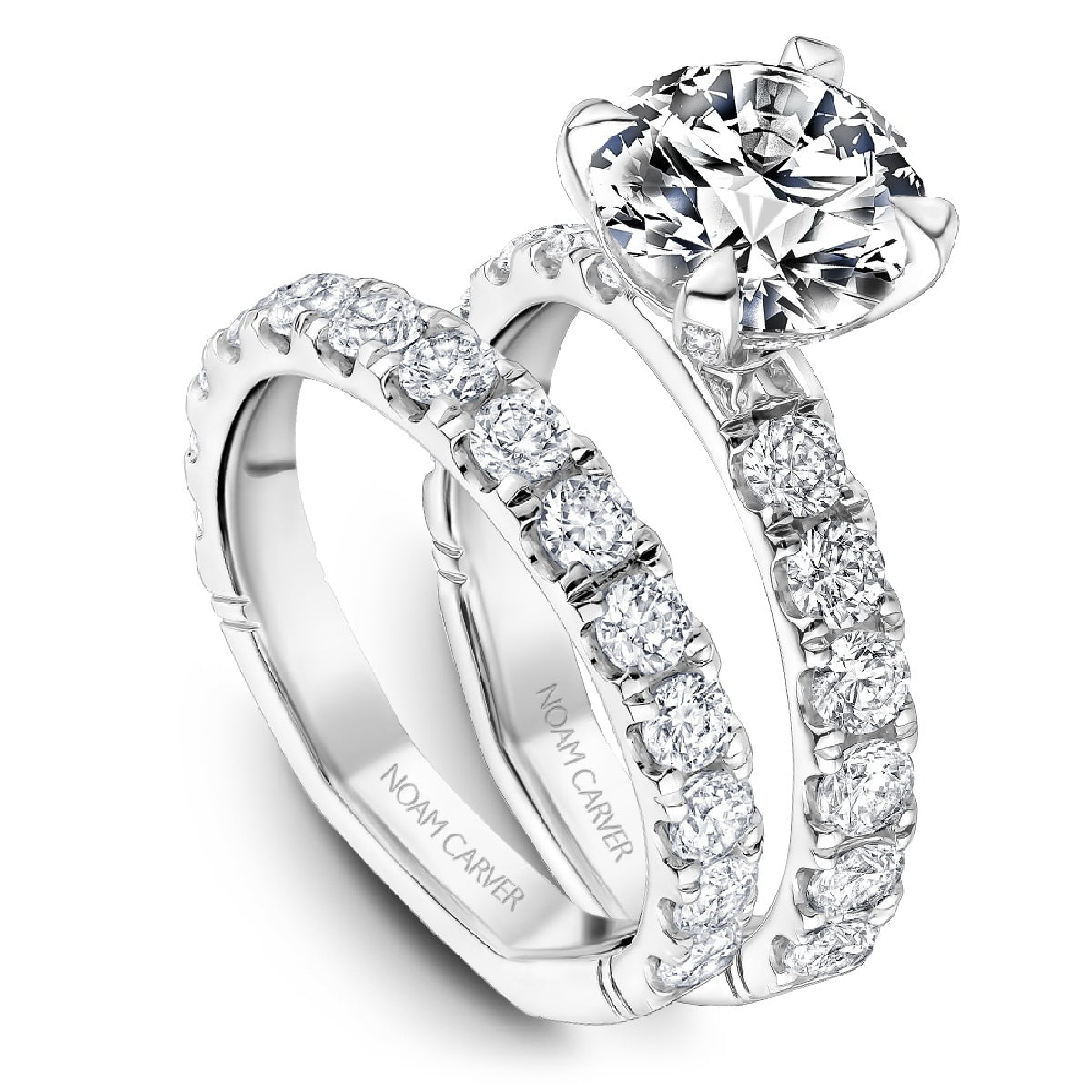 Noam Carver Half Anniversary Diamond Wedding Ring in 14K White Gold set with 14 Round-shape Diamonds (1.12 ctw) F-G Color VS1 Clarity .