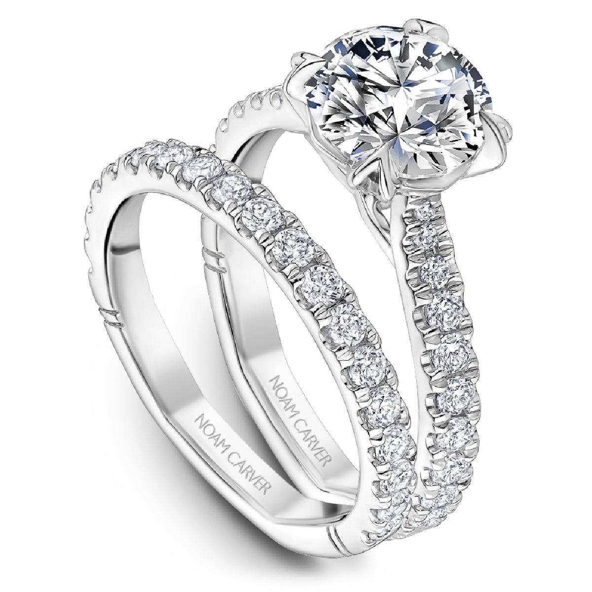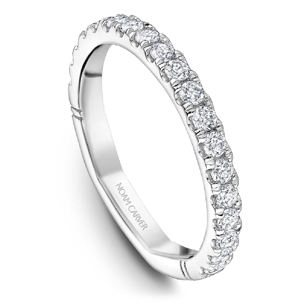 Each Noam Carver wedding band is designed with impeccable attention to every detail, navigating the delicate balance of timeless designs with intriguing allure. This Atelier wedding band has glistening round diamonds in a straight design, making it perfect to stack with other bands. Each ring can be customized to fit your finger size, metal preference, as well as modified in design to fit your exact specifications. Shown here with in 14k white gold and 0.61ctw diamonds. Noam Carver, an ode to the past with an eye for tomorrow.