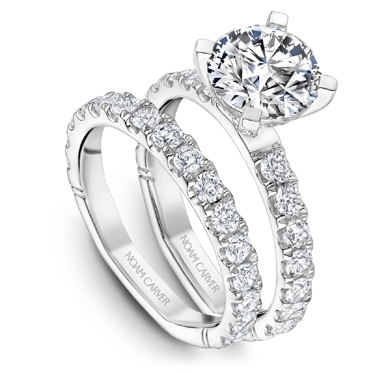 Each Noam Carver wedding band is designed with impeccable attention to every detail, navigating the delicate balance of timeless designs with intriguing allure. This Atelier wedding band has glistening round diamonds in a straight design, making it perfect to stack with other bands. Each ring can be customized to fit your finger size, metal preference, as well as modified in design to fit your exact specifications. Shown here with in 14k white gold and 0.88ctw diamonds. Noam Carver, an ode to the past with an eye for tomorrow.