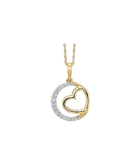 10K Yellow Gold Heart Pendant with 10K Yellow Gold Cable Link Necklace set with Round-shape Diamond I-J Color I1/I2 Clarity . This necklace's total carat weight is .08ctw.