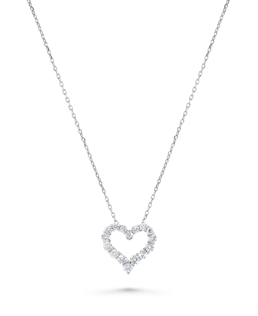 14K White Gold Heart Pendant with 14K White Gold Cable Link Necklace set with Round-shape Diamond G-H Color SI Clarity . This necklace's total carat weight is .50ctw.