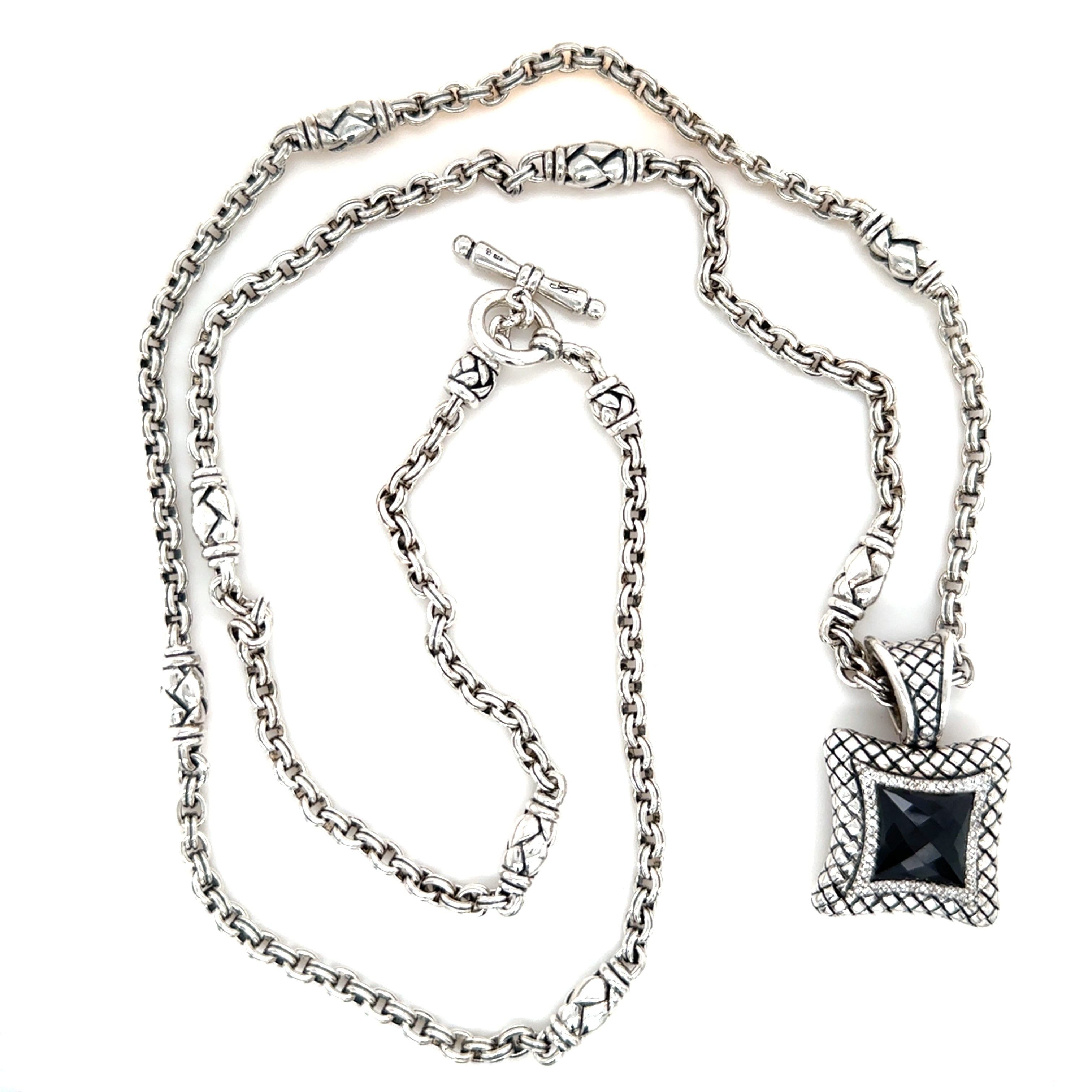 Estate "Scott Kay" 925 White Sterling Silver Solitaire Pendant set with onyx a 925 White Sterling Silver Link Necklace.