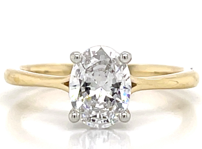 14K Yellow Gold Solitaire Diamond Engagement Ring with Oval-shape center Diamond (1.03ct) H-I Color I1 Clarity . This ring's total carat weight is 1.03ctw.