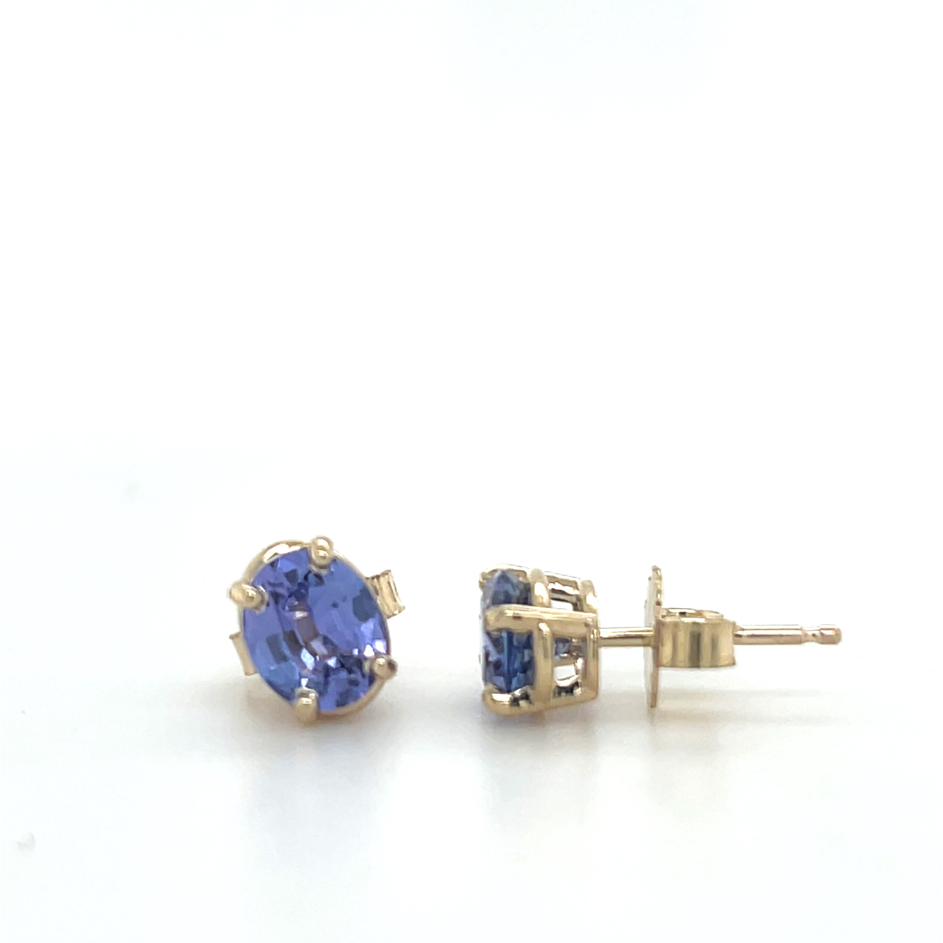 Oval Shape Tanzanites Solitaire/Stud Earrings in 14K Yellow Gold is backordered and will ship as soon as it is back in stock.
