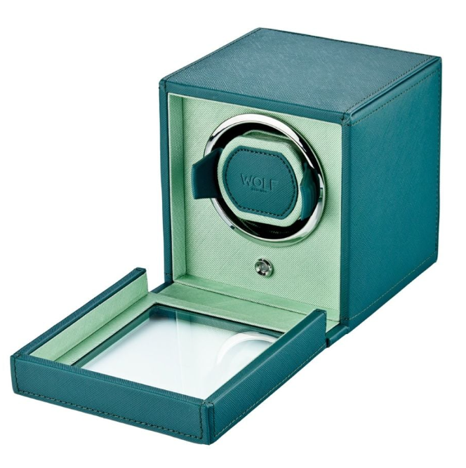 WOLF Cub Single Watch Winder with Cover-Seltzer Teal/Mint